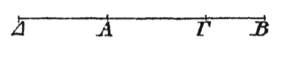 Εὐθεῖα γὰρ γραμμὴ ἡ ΑΒ ἄκρον καὶ μέσον λόγον τετμήσθω κατὰ τὸ Γ σημεῖον, καὶ ἔστω μεῖζον τμῆμα ἡ ΑΓ, καὶ τῇ ΑΓ ἴση [κείσθω] ἡ ΑΔ. λέγω, ὅτι ἡ ΔΒ εὐθεῖα ἄκρον καὶ μέσον λόγον τέτμηται κατὰ τὸ Α, καὶ τὸ μεῖζον τμῆμά ἐστιν ἡ ἐξ ἀρχῆς εὐθεῖα ἡ ΑΒ.