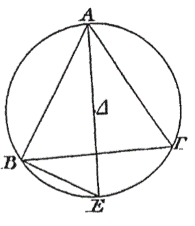 Ἔστω κύκλος ὁ ΑΒΓ, καὶ εἰς αὐτὸν τρίγωνον ἰσόπλευρον ἐγγεγράφθω τὸ ΑΒΓ· λέγω, ὅτι τοῦ ΑΒΓ τριγώνου μία πλευρὰ δυνάμει τριπλασίων ἐστὶ τῆς ἐκ τοῦ κέντρου τοῦ ΑΒΓ κύκλου.