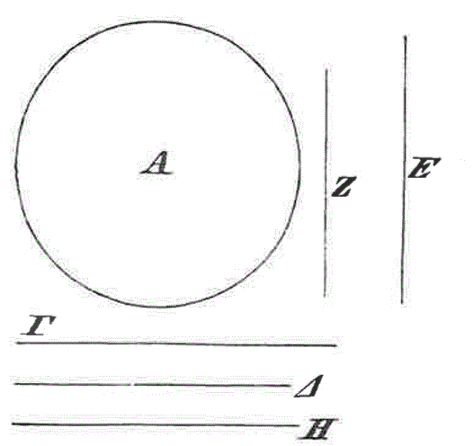 Ἐκκείσθω κύκλος ὁ Α καὶ δύο μεγέθη ἄνισα τὰ Ε, Ζ, καὶ μεῖζον τὸ Ε· δεῖ οὖν πολύγωνον ἐγγράψαι εἰς τὸν κύκλον καὶ ἄλλο περιγράψαι, ἵνα γένηται τὸ ἐπιταχθέν.