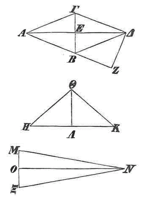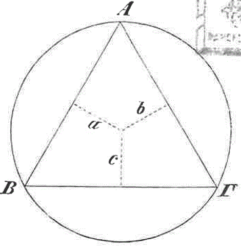 [25] Τετμήσθω ἡ ΑΒΓ περιφέρεια δίχα κατὰ τὸ Β, καὶ ἐπεζεύχθωσαν αἱ ΑΒ, ΓΒ, ΔΒ· ἔσται δὴ τὰ ΑΒΔ, ΒΓΔ τρίγωνα μείζονα τοῦ ΑΔΓ τριγώνου. Ὧι δὴ ὑπερέχει τὰ εἰρημένα τρίγωνα τοῦ ΑΔΓ τριγώνου, ἔστω τὸ Θ. Τὸ δὴ Θ ἤτοι τῶν ΑΒ, ΒΓ τμημάτων ἔλασσόν ἐστι ἢ οὔ.