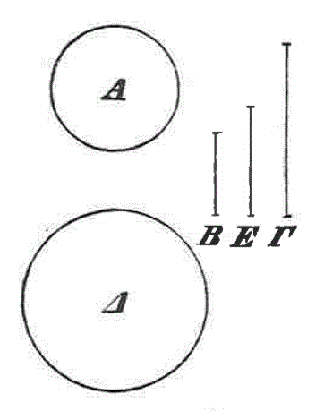 Ἔστω τὰ δοθέντα δύο μεγέθη τὰ Α, Β, ὁ δὲ δοθεὶς κύκλος ὁ ὑποκείμενος. Λέγω οὖν ὅτι δυνατόν ἐστι ποιεῖν τὸ ἐπίταγμα.