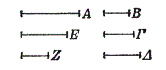Ἔστωσαν οἱ δοθέντες δύο ἀριθμοὶ οἱ Α, Β, καὶ δέον ἔστω ἐπισκέψασθαι, εἰ δυνατόν ἐστιν αὐτοῖς τρίτον ἀνάλογον προσευρεῖν.