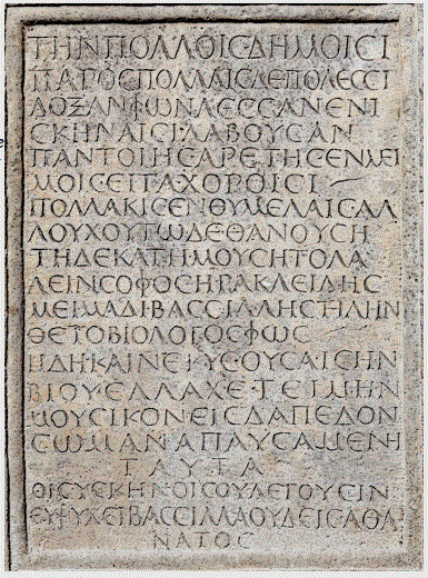 μίμαδι Βασσίλλῃ στήλην θέτο βιολόγος φώς.